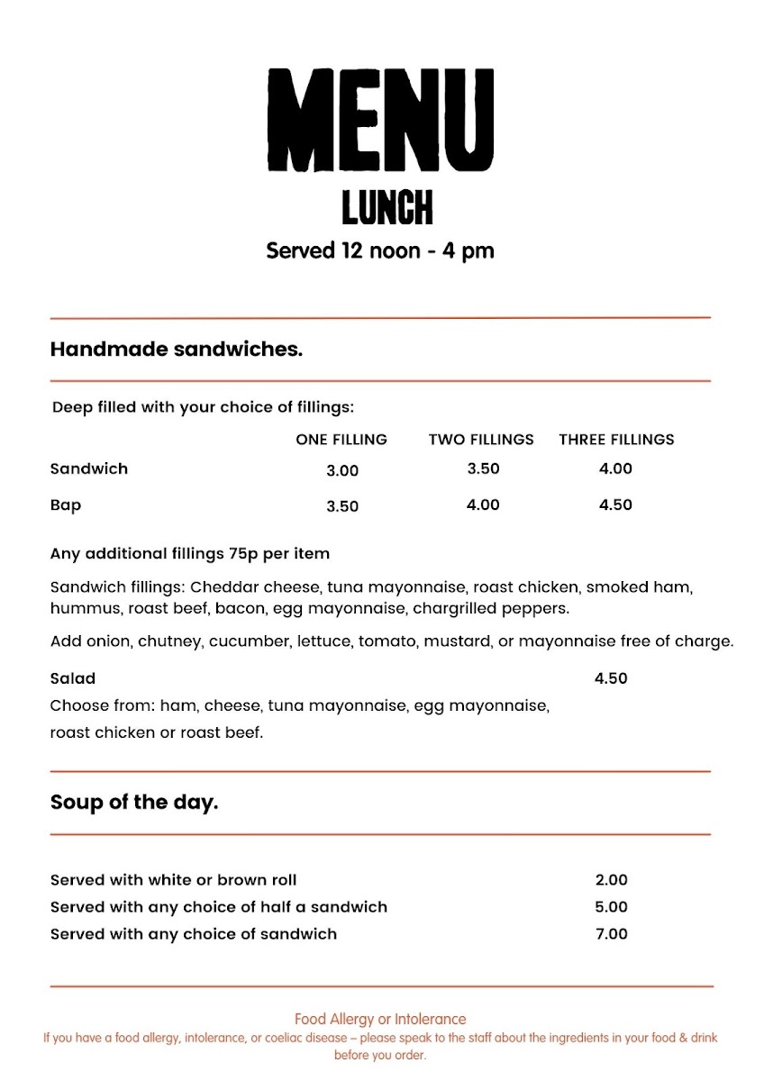 For those who prefer lighter fare, try the toasted teacake, fluffy scones with jam and butter, or a vibrant salad. Cold drink options like refreshing juice and bottled water complete the experience without breaking the bank.